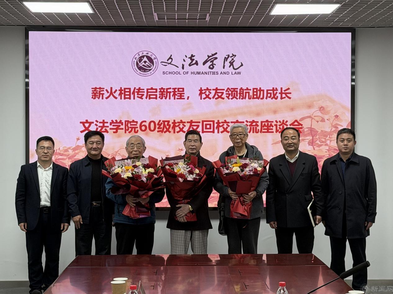 为迎接学校80周年华诞,深入落实立德树人根本任务,充分发挥优秀校友的榜样引领作用,助力学生成长成才,4月14日上午,学院在瀚学楼710会议室举办“薪火相传启新程,校友领航助成长”60级校友回校交流座谈会。60级校友代表李雨龙、马承、韩国兴、学校党委常委、副校长王力、文法学院党政班子、师生代表出席活动。会议由院党委书记袁凤识主持。